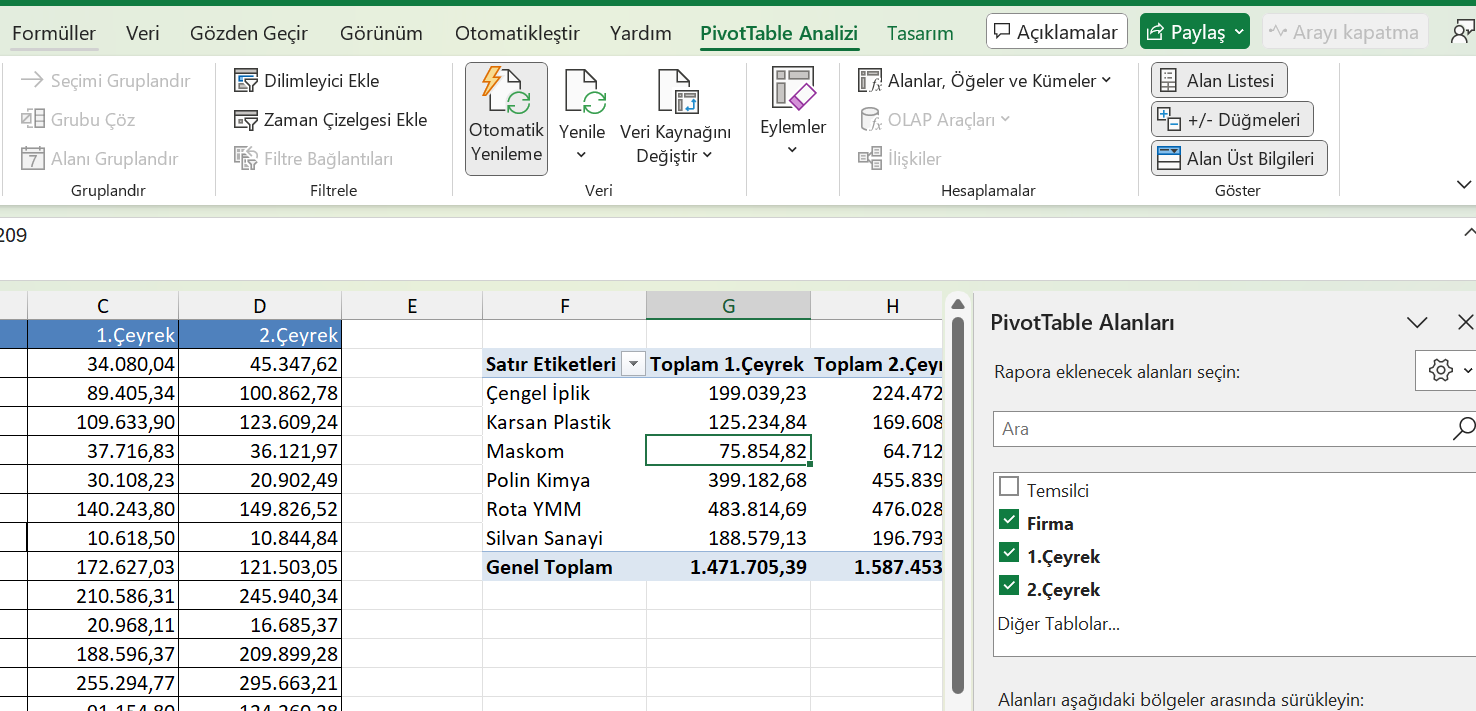 Özellik, bir pivot tablo oluşturulduğunda genellikle varsayılan olarak aktif gelir ve yönetimi oldukça basittir.