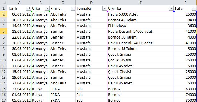 Örneğin tablomuzda Almanya’ya Benner Firmasının Yapmış olduğu El Havlusu satışlarının ortalamasını bulmak için;
