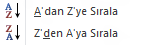 4- Sağ Butonda yer alan Sırala Düğmesi‘dir.