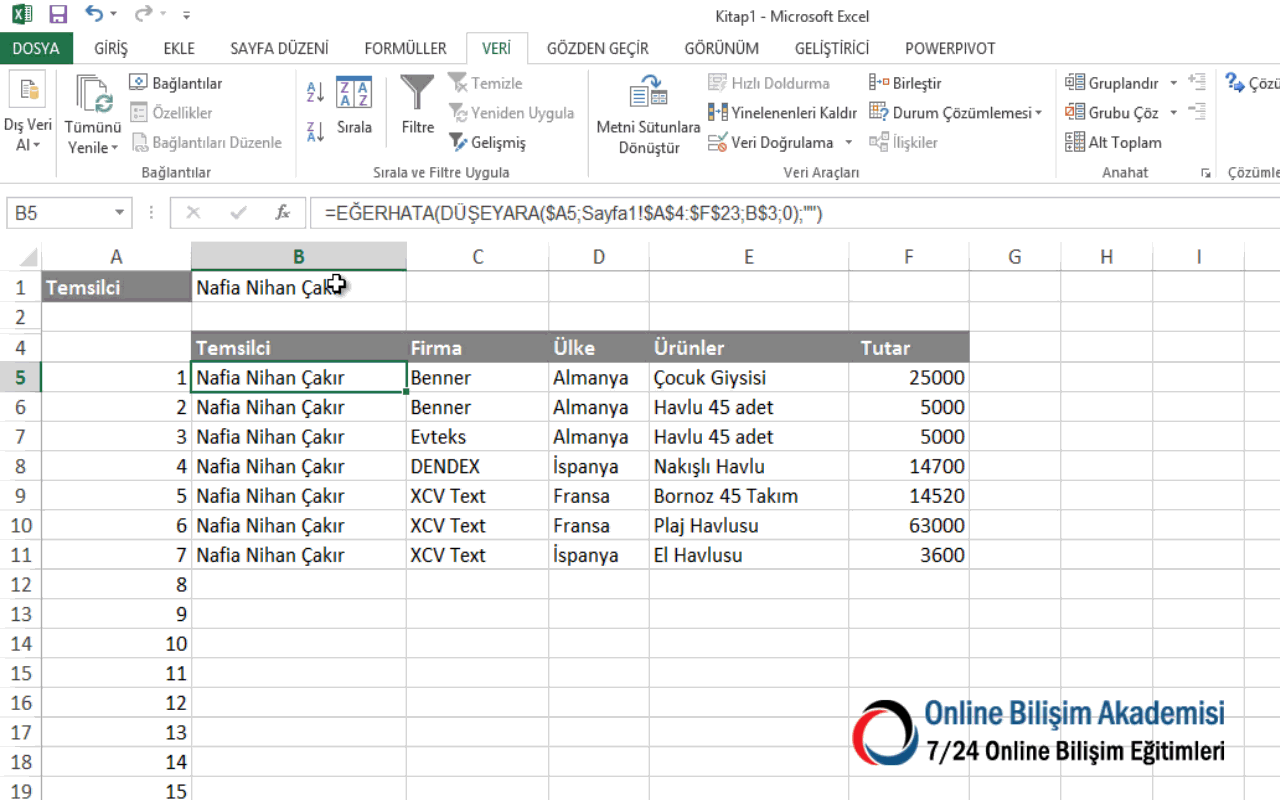 Veri Doğrulama-Düşeyara işlevi- Ad tanımlama ve Eğersay işlevleri
