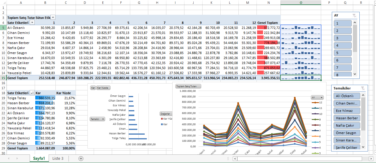 Excel’in Özet tablolarını Dilimleyiciler ve Grafikler ile birlikte kullanarak Dashboard Ekranlar oluşturmak mümkündür. Birçok veriyi aynı anda görmenizi ve verilerinizi hızlı analiz etmenizi sağlayan Dashboard raporlama ekranları, genelde aynı sayfa içine oluşturulmuş özet tablolar ve özet grafikler ile dilimleyicilerden oluşur.