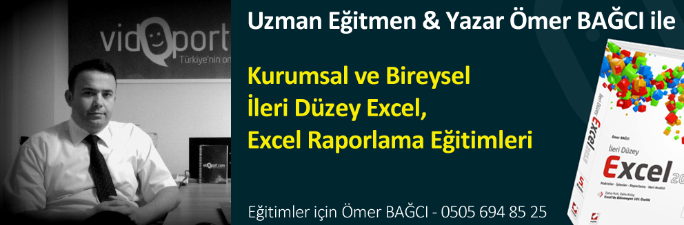 Şirketinize özel bir Excel eğitimi almak isterseniz 0505 694 85 25 nolu telefondan bana ulaşabilirsiniz.