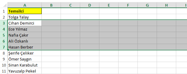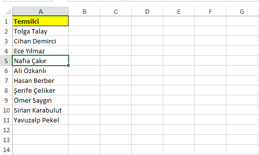 A8 hücresine tıklayın ve Makro kaydını durdurun. Daha sonra makronuzu tekrar çalıştırdığınız da, A8 hücresinden sonra 5 satır eklendiğini ve bir sonraki ismin aktif olarak karşınıza getirir.  Makronuzu her çalıştırdığınızda altta yeni satırlar eklendiğini görürsünüz.