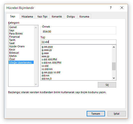 Buradaki sorunu gidermek ve toplam saatin doğru olarak karşımıza gelmesini sağlamak için yapmamız gereken, toplam aldığımız hücreye özel biçimlendirme uygulamaktır.
