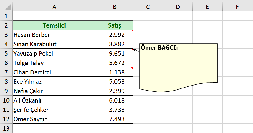 Excel’de Bilinmeyenler.. Açıklama Pencerelerini Değiştirmek