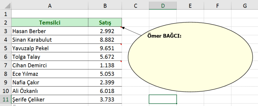 Excel’de Bilinmeyenler.. Açıklama Pencerelerini Değiştirmek