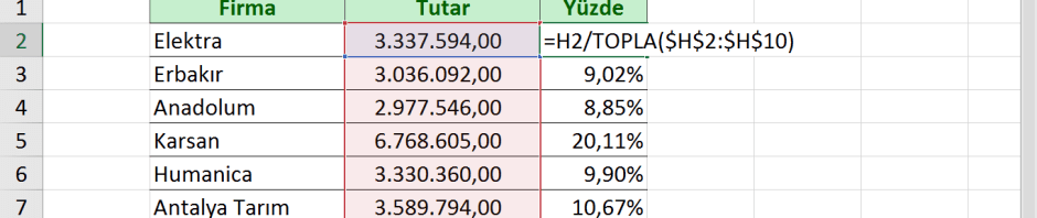 Excel’de yüzdelik değerleri bulmak