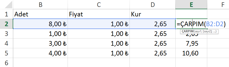 – B2 hücresine tıklayın.