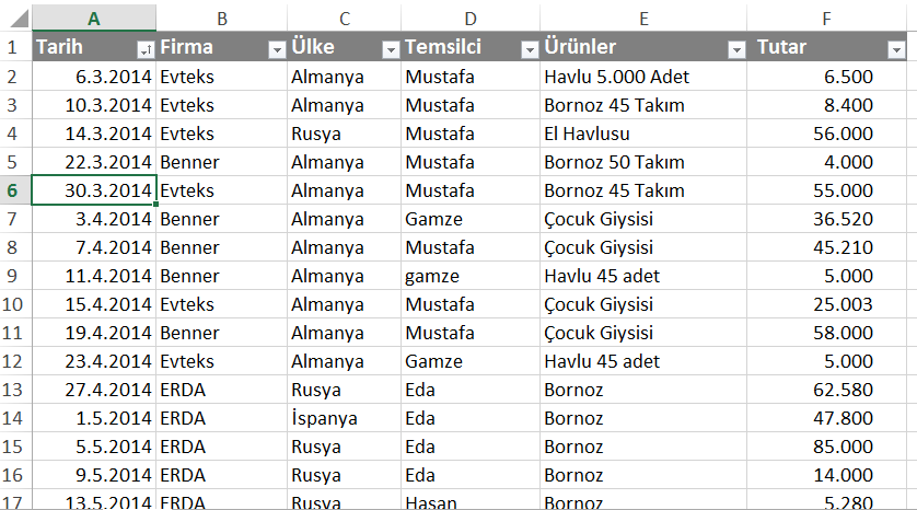 Aşağıdakine benzer şekilde bir tablonuzun olduğunu düşünelim.